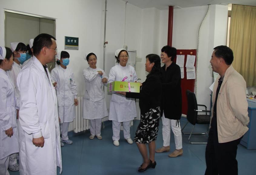 2015年5月12日是第104个护士节,在今年的5月12日上午9时,我院院长张新昀、党委书记郑菊贤、副院长郭雅玲等院领导班子成员,在护理部主任陪同下,深入临床科室,看望慰问了我院辛勤工作在临床一线的护理人员。