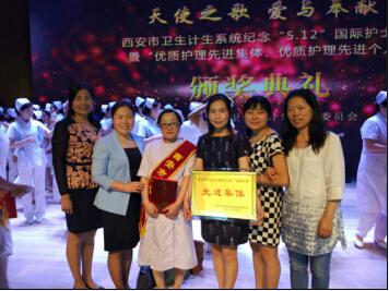 6、5月10日,护理部组织人员参加了市卫计委举办的纪念“5.12”国际护士节暨“优质护理先进集体、先进个人” 颁奖典礼。我院感染二科护士侯笑娜荣获“优质护理先进个人”,感染一科荣获“优质护理先进集体”。