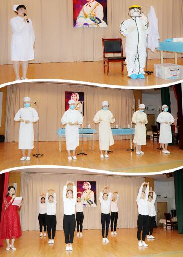 展示结束后,活动进入到文艺演出环节。临床各科室精心准备的节目将整场活动推向了高潮,情景剧《出血热患者的健康教育》幽默风趣,歌曲《过客》优美动听,舞蹈《惊鸿一面》曼妙婀娜。整场演出形式多样,各具特色,淋漓尽致的展现了我院护士蓬勃向上的精神风貌。