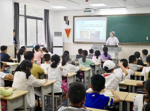 18日下午,护理部一行又来到了西安外国语大学附属小学,为小学生们上了一堂常见传染病的预防课。任艳叶主任生动的讲解了夏季常见传染病的临床表现、预防措施等知识,督促孩子们,要重视个人卫生,养成勤洗手、喝开水、吃熟食、常通风、晒衣被的好习惯,并现场和孩子们一起练习了七步洗手法。通过此次知识讲座,不仅让孩子们学会了传染病的预防方法,也提高了自我保护的意识。