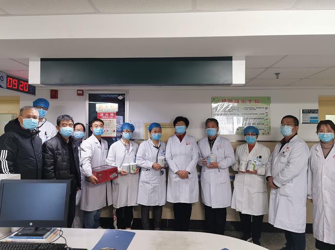 为关爱一线医务人员, 11月26日上午,市第八医院院长郭雅玲、副院长郭宗虎、许优带领医务科、护理部、院办、党办、监察室等科室负责人深入临床一线,分别对感染二科、肝病二科、肝病六科、隔离病区一线工作人员及酒店隔离休养人员进行了慰问,为他们送上了精心准备的健康饮料和滋补营养品。