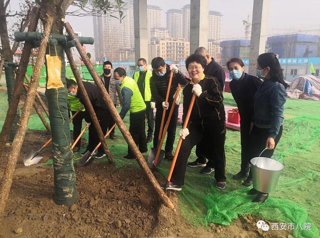 早春三月,鲜花吐蕊,春意盎然,一年一度的植树节之际,好色视频 领导班子来到了红会医院高铁新城院区在建现场,同市卫健系统各单位共同参加了由西安市卫生健康委员会主办的西安市卫生健康系统2021年全民义务植树节活动。早上9时植树活动开始,院领导们为一株株玉兰树苗培土、浇水,并为它们挂上了写有书名、栽种日期的小名片。