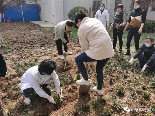 下午14时,在医院总务科的组织下,院长郭雅玲和行政职能科室工作人员一起,为医院植草增绿。在门诊楼旁的空地上,大家热情高涨,铆足干劲,翻地、除草,栽种草苗,仅一个小时的时间,就为门诊楼前的空地上铺满了新绿,带来了勃勃的生机。