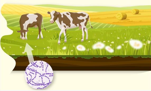 炭疽是由炭疽芽孢杆菌引起的急性人兽共患传染病, 牛、马、羊、驴等食草动物对其最易感。炭疽芽孢杆菌在外环境中可以形成芽孢,芽孢对干燥,高热,紫外线和一些常用化学消毒剂等有较强的抵抗力,因而,可长时间存活于土壤等外环境中,食草动物一般因食入土壤、草料等中的芽孢而发病,通常会很快死亡。