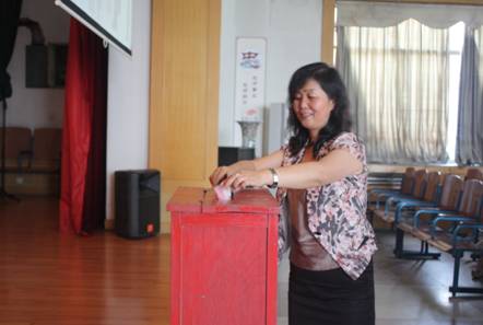 “一堂一善事”环节,全场人员的“大爱”把本次的道德讲堂带入了高潮,在一首韦唯演唱的《爱的奉献》中,大家你一百、我五十排着队有序的向市卫生局系统“两联一包”扶贫工作中的帮扶对象——临潼区庄王村进行了捐款。通过现场募捐共收到捐款3655元。届时,我们将捐款亲手送往庄王村,表达我院全体职工对他们的关心和帮助。西安零距离对此次活动做了全面报 道。