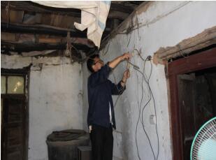 同志们在昨天清理杂物的基础上,今天主要是为王悦明粉刷墙壁、油漆门窗、更换破损玻璃,布置照明电线,更换照明灯、重新安装房屋顶棚、健康宣教和讲解相关政策等。电工、水工、木工、粉刷工,大家各负其责,王悦明家重现了昨日繁忙的景象,计生协秘书长涂洪柱、市第八医院党委书记李学敏、纪委书记高海琪一边指挥,一边忙碌的帮大家干这干那。为了节约时间,尽快完成当天的任务,同志们没有外出吃饭,而是在老乡家由女同志亲自动手做午饭,午饭虽简单,但劳累了一上午的同志们吃的香甜。