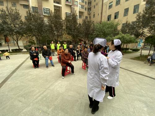伴随着欢快的歌声,志愿者们还为老人们进行了义诊服务,医院专家耐心的为前来询问的老人、社区群众把脉、讲解;志愿者们为老人们测血压,发放宣传册,让社区的群众了解疾病的相关知识和自身健康状况,得到了社区群众的一致好评。