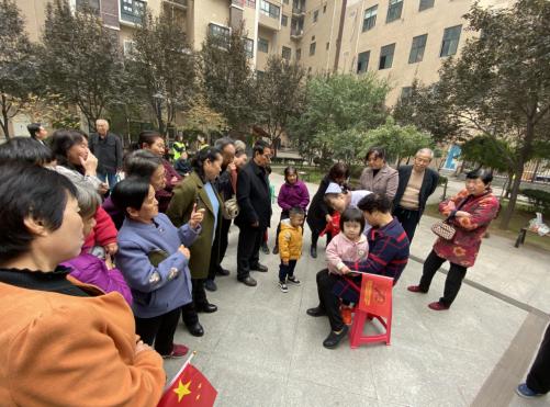 意到深处显亲情,为了进一步体现医患真情,使大家再次融入庆祝建国70周年举国欢庆的氛围中,志愿者们和老人们一同唱起了《我和我的祖国》《明天会更好》,老人们手举鲜艳的小红旗,伴随着乐曲将活动掀起了高潮,志愿者和老人们遥相辉映。从共情到同唱,歌声点燃了全场的热情,大家高兴的齐声欢呼:“祖国,我爱你”,为祖国喝彩。